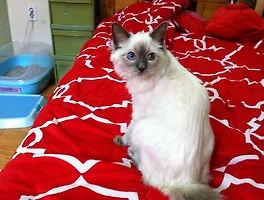 이렇게 인연이 닿아 데려온 고양이는 랙돌(Ragdoll). 봉제인형이라는 뜻의 랙돌은 안고있으면 봉제인형처럼 축 늘어진다 해서 붙여진 이름으로, 사람을 생각해주고 아주 온순한 특징이 있답니다. 중대형 종에 속해서 수컷의 경우 최대 9kg정도까지 큰다고 하고, 암컷의 경우는 그 반절정도 된다네요. 아주 파란 눈이 특징이지요.